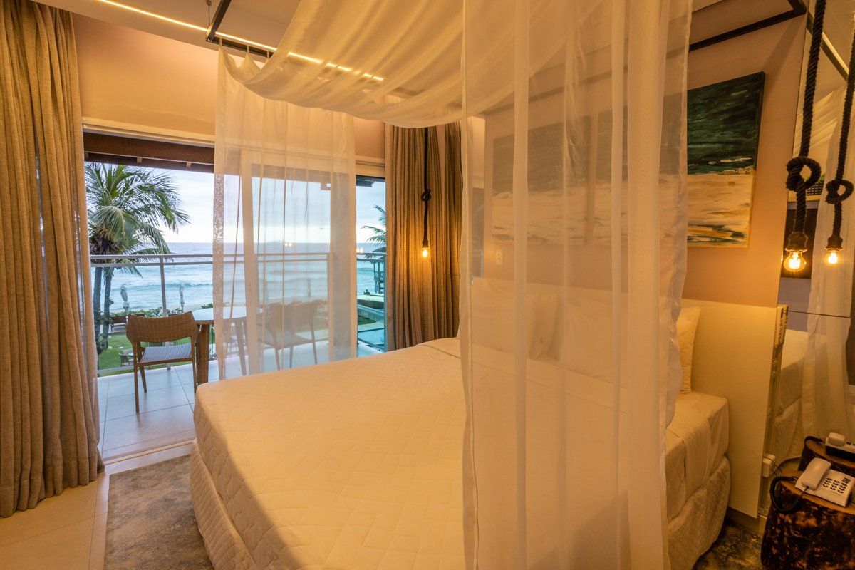 Possuem um piso inferior com cama king size, banheiro e varanda privativa voltada para praia e, mezanino com banheira dupla de hidromassagem e vista deslumbrante do mar.