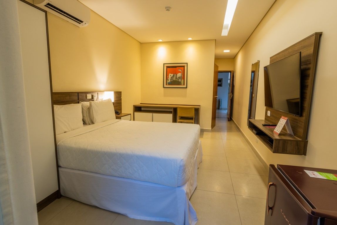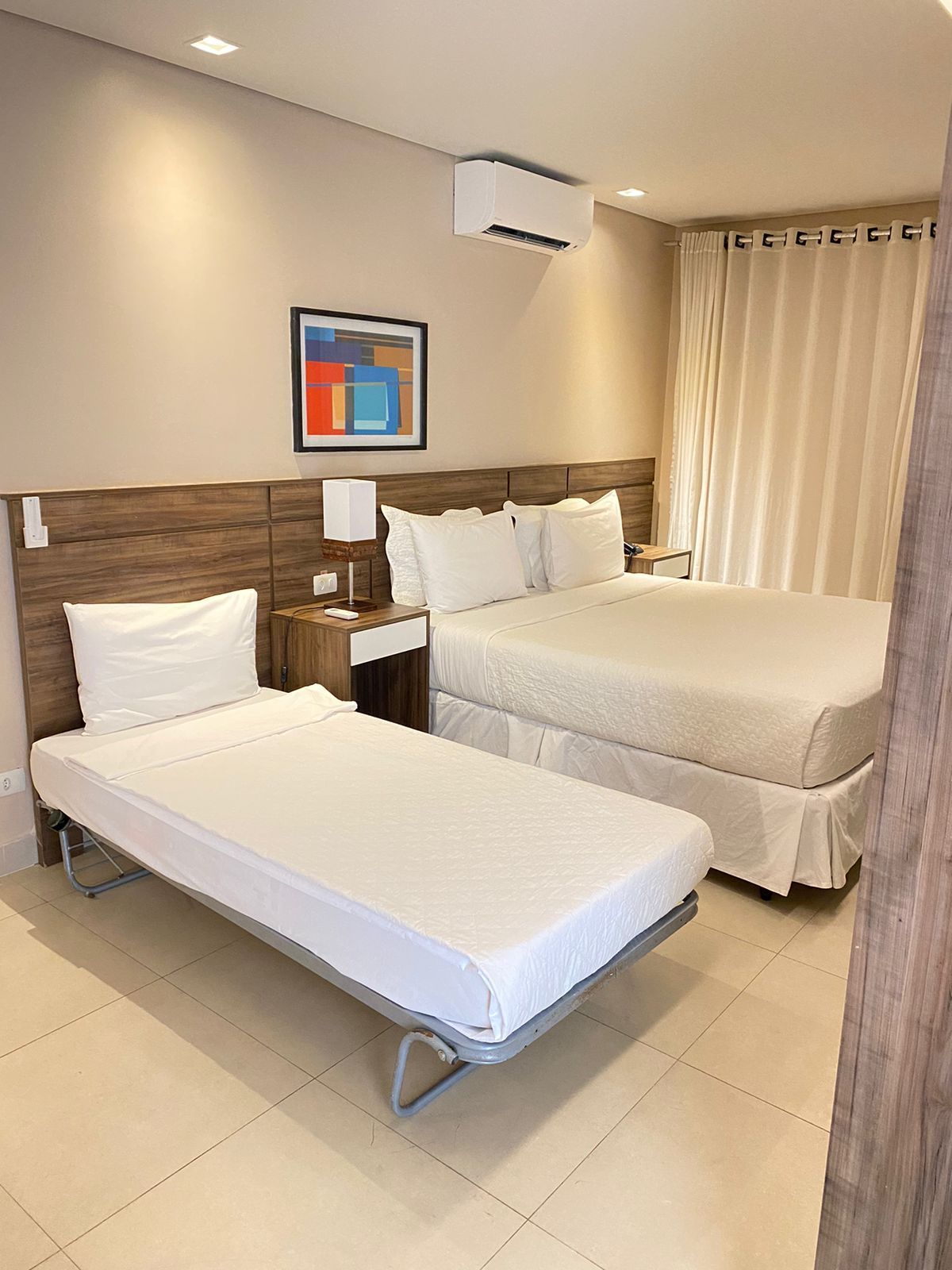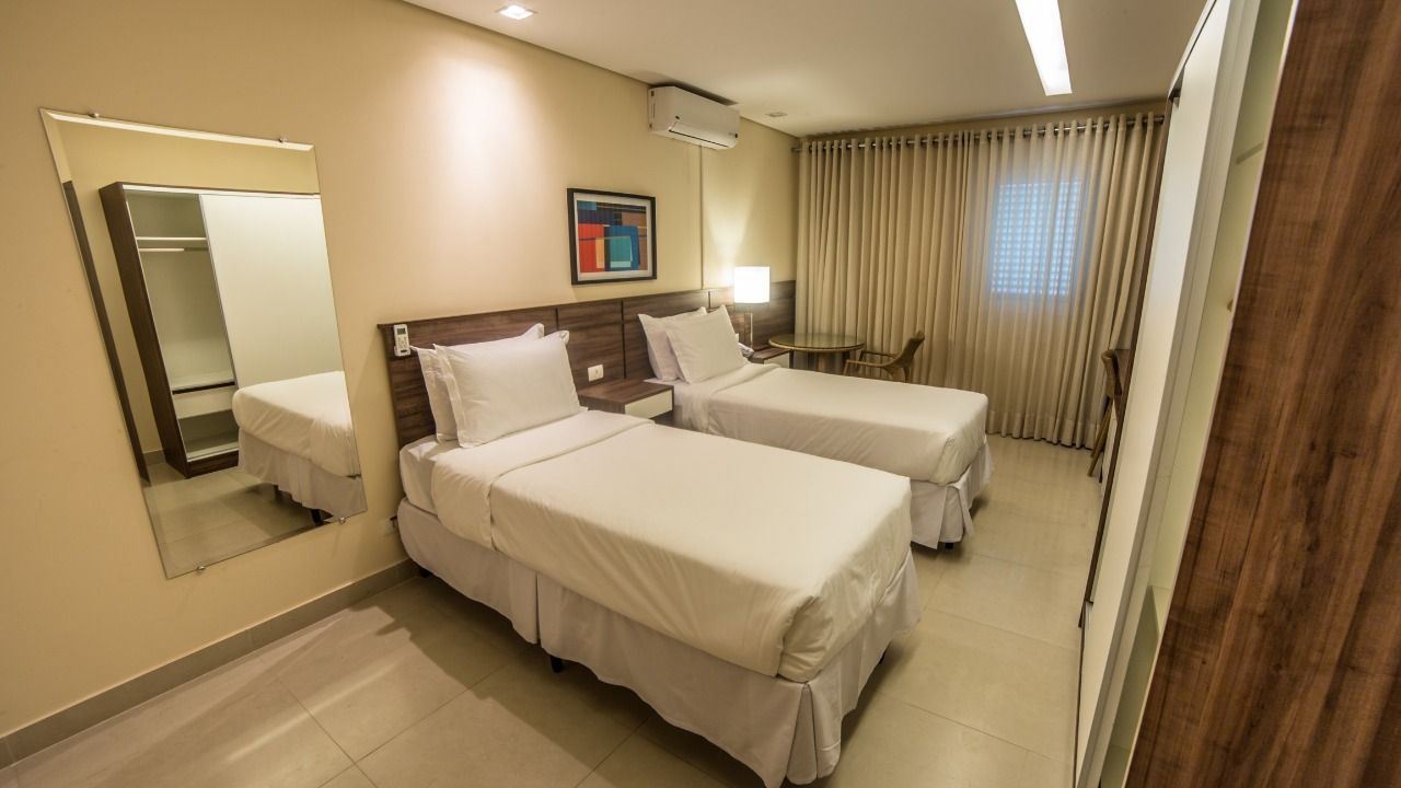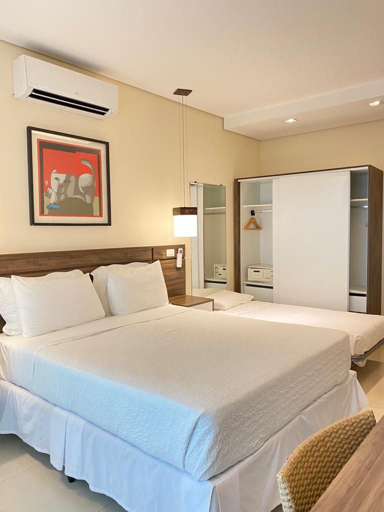 Localizados próximos à recepção do hotel, com uma unidade no térreo e outra no primeiro andar, este apartamento conta com toda a infraestrutura dos demais porém não possuem varanda e portanto são sem vista, com apenas uma janela voltada para o corredor de serviços. Podem ser configuradas com uma cama queen size ou duas camas box solteiro.