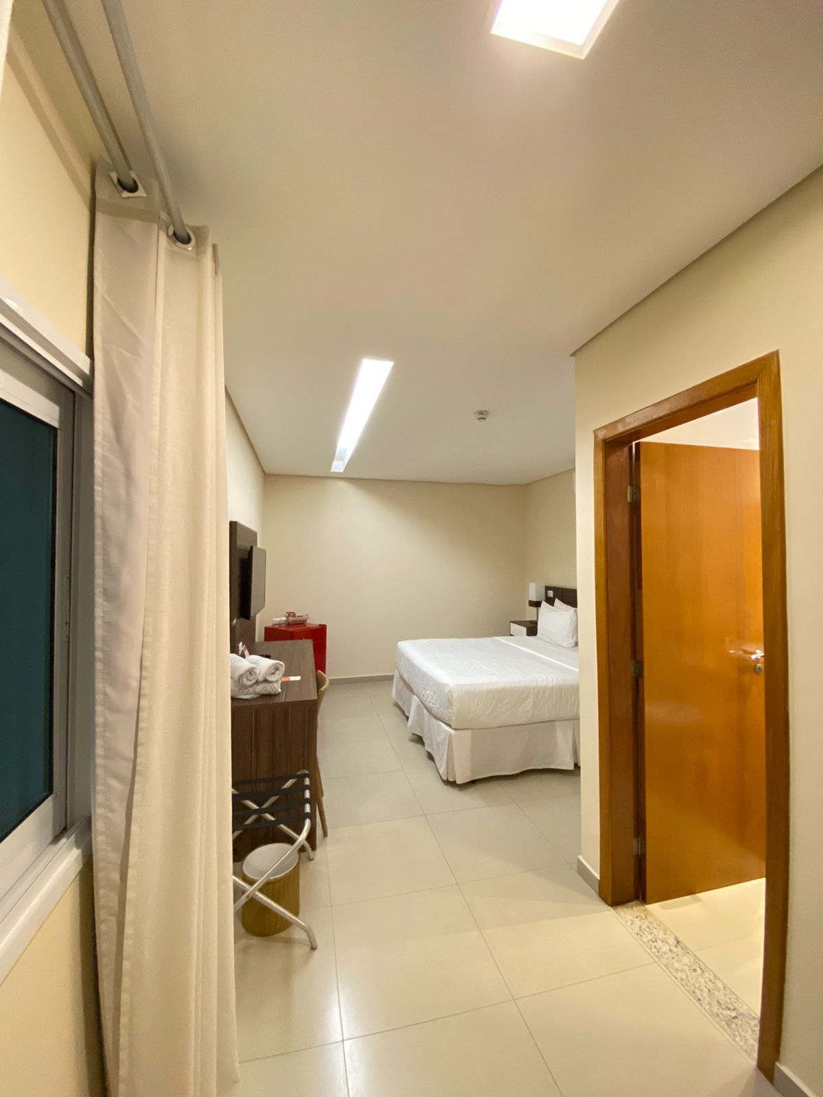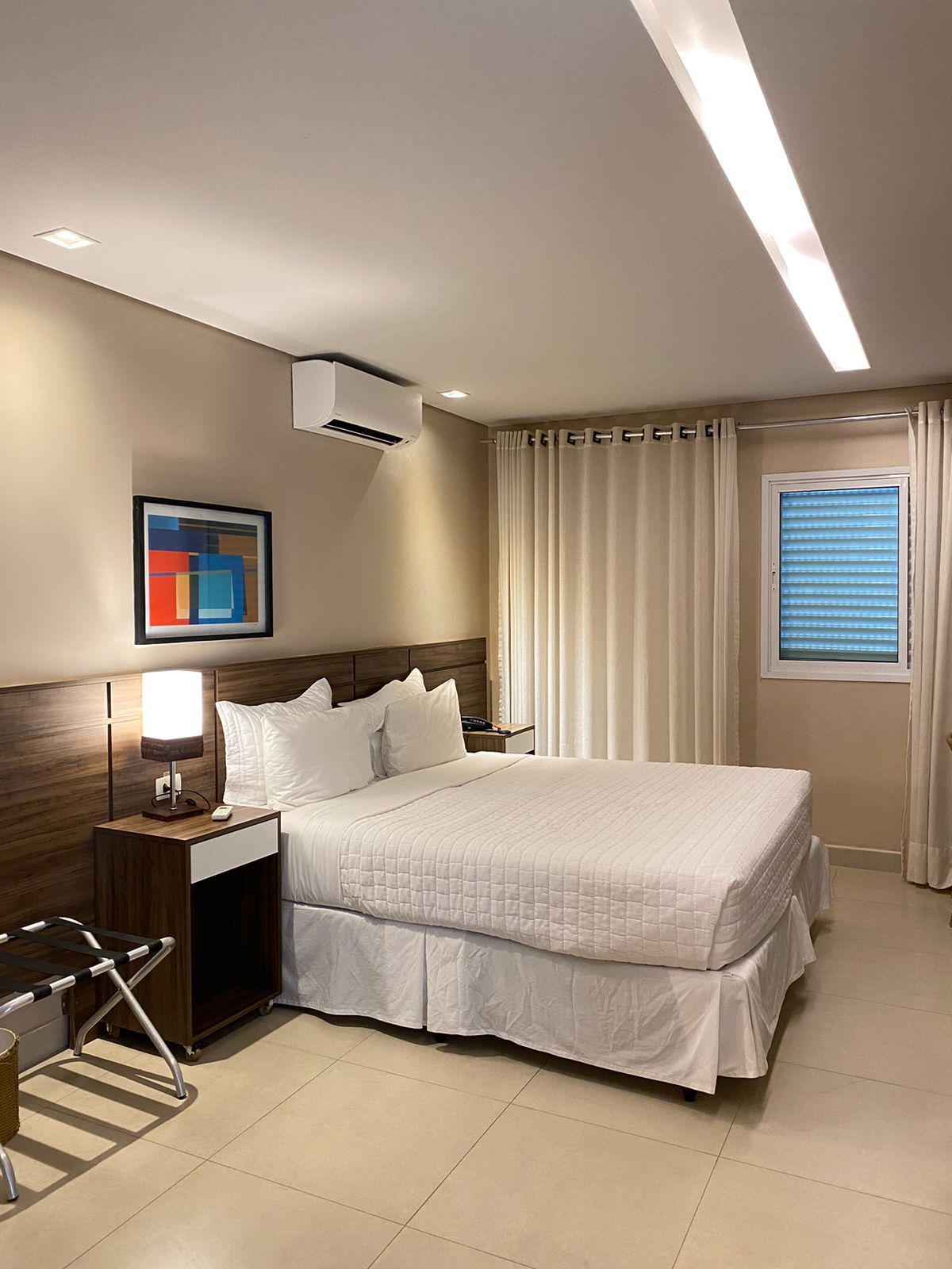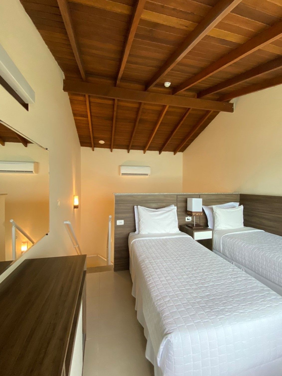 Localizados próximos à recepção do hotel, com uma unidade no térreo e outra no primeiro andar, este apartamento conta com toda a infraestrutura dos demais porém não possuem varanda e portanto são sem vista, com apenas uma janela voltada para o corredor de serviços. Podem ser configuradas com uma cama queen size ou duas camas box solteiro.