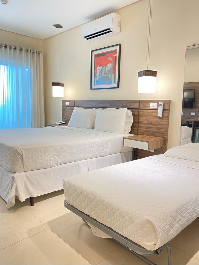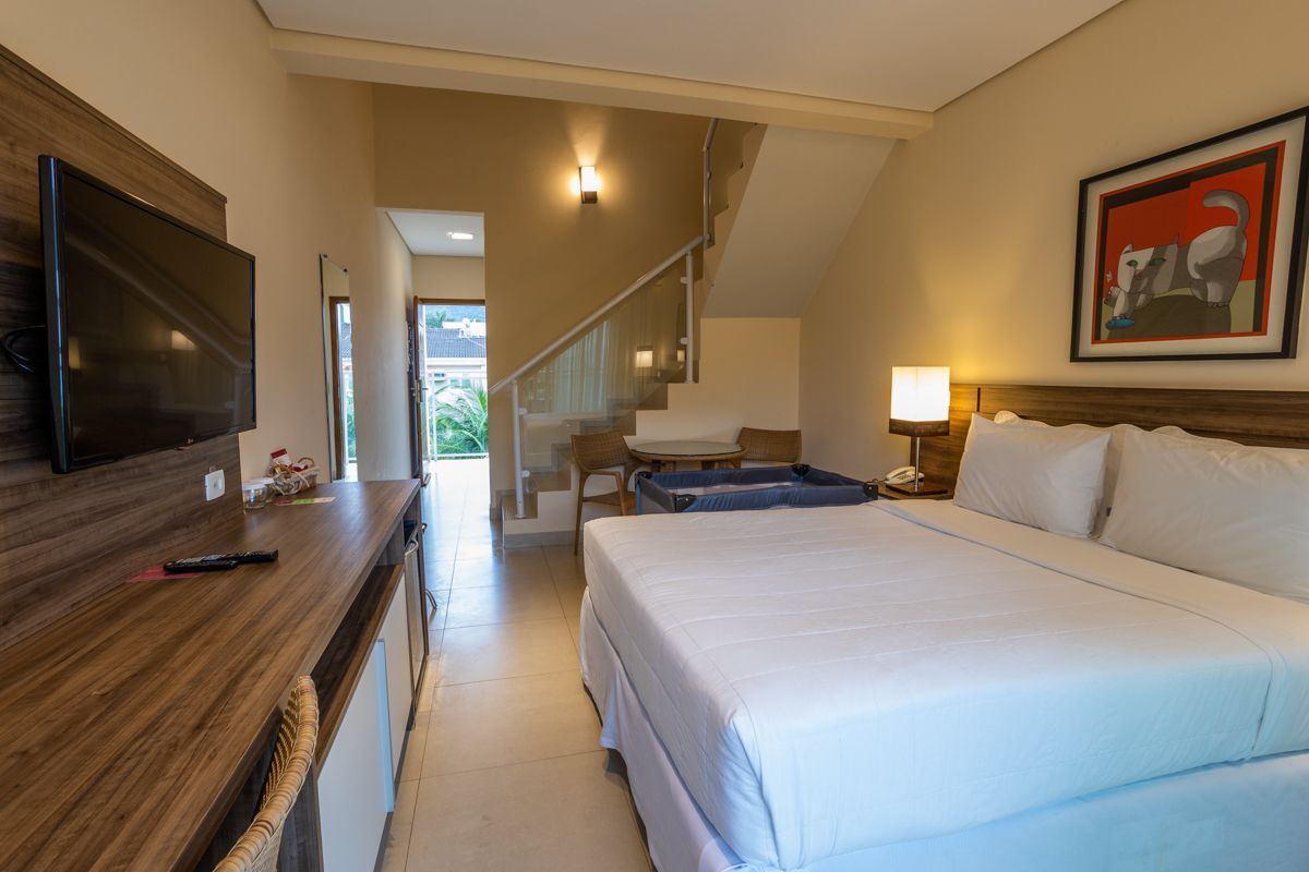 Para viagens em família, os quartos duplex possuem dois ambientes que podem acomodar até 5 pessoas.